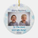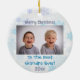 ¡A cualquier abuelo le encantaría recibir este adorable ornamento de fotos personalizados con un fondo de copo de nieve azul y plata! Personaliza con tu propia foto. El tipo de letra y el color del texto se pueden cambiar para que se ajusten a sus preferencias.