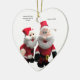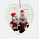 Esta decoración de árbol de Navidad, presenta dos de Santa, y uno le dice al otro un chiste. Los chistes son editables, por lo que puedes poner tu propio chiste.