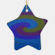 Trae mucha más alegría navideña a tu árbol con un adorno personalizado para tu árbol de Navidad, hecho de porcelana blanca. Este tiene forma de estrella con diferentes remolinos de colores. Puedes diseñar tu propia foto con fotos familiares, imágenes y un mensaje personal a ambos lados. Una cadena de hilo dorado hace que sea fácil colgarse en tu árbol de Navidad. El diámetro es: 2,87" Peso: 1,125 oz.