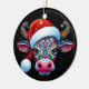 Adorno De Cerámica Navidades Cow Bull con Santa Hat Arte Popular Mexi