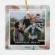 Este hermoso ornamento de árbol de Navidad presenta un marco de foto cuadrado en la parte delantera y trasera. La foto principal está sobre un fondo de color rojo y verde y ofrece texto personalizado para su nombre y año. El reverso ofrece otra foto cuadrada que llena todo el espacio. Fotografía © Storytree Studios, Stanford, CA