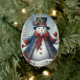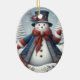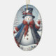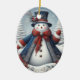 Navidades de arte popular Snowman Ceramic Ornament Trae mucha más alegría navideña a tu árbol con un adorno de cerámica personalizado. Añade tus fotos, imágenes y citas favoritas en ambas caras. Incluye un hilo dorado para poder colgar este recuerdo tan especial en cuanto lo recibas.