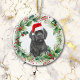 Adorno De Cerámica Navidades de Black Labradoodle Puppy Holly Wreath