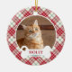 Adorno De Cerámica Navidades de control rojo Tartan Personalizado Cat