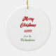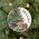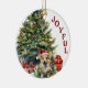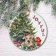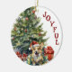 En la parte delantera de este adorno de vacaciones está la imagen de un lindo Perro de Corgi galés de Pembroke con un sombrero de Santa Claus rojo y blanco. El perro se sienta frente a un árbol Holiday decorado y envuelto en una cuerda de luces festivas. El texto rojo a un lado dice "JOYFUL". En la parte posterior, el texto rojo y verde dice MERRY CHRISTMAS", y hay campos de texto adicionales para que usted lo personalizar. ¡Haz que diga lo que quieras!