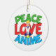 Un lindo obsequio navideño de manga para alguien que ama la animación japonesa. Peace Love Anime en verde, rojo y azul con una bella colegiala rubia vestida de marinero azul.
