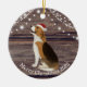 Este adorno navideño de cerámica tiene una hermosa beagle con un sombrero rojo de Santa, fondo de madera y luces y un mensaje de la espalda. Este adorno es perfecto para tu árbol o para regalarlo.