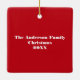 Este ornamento está listo para ser personalizado con su propia foto en forma cuadrada. El mensaje de su personalizado aparece en negrita con letras blancas contra un overlay rojo en la parte inferior de la imagen. También hay un punto para añadir texto adicional en el reverso.