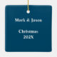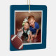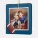Fútbol, niños foto adorno navideño. Ornamento de árbol de doble cara con plantilla de foto cuadrada en un lado y texto personalizado en el otro. Incluya nombre o nombres con fecha de año para un regalo de diversión o abuelo. Un diseño limpio y sencillo es fácil de personalizar para los gemelos, hermanos o cualquier niño.