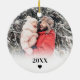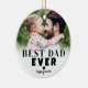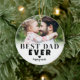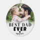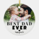 Ornamento de fotos de Navidades Personalizados de Mejor Papá. Este adorno personalizado es una manera significativa de celebrar a papá durante la temporada de fiestas. Con una foto diferente a cada lado, es un sincero regocijo que captura recuerdos favoritos y agrega un toque personal a tu árbol de Navidad. El frente muestra "Mejor Papá Nunca" en tipografía audaz y moderna junto con una foto —perfecta para un momento dulce entre papá y sus hijos. También puedes cambiar la frase por "Mejor papá por Par" para los amantes del golf. En la parte posterior se muestra una segunda foto con un gradiente negro suave en la parte inferior, donde se muestra el año y un pequeño acento cardíaco. El diseño es limpio y moderno, con fuentes y colores completamente personalizables. Un regalo perfecto para los Navidades o sólo para recordarle a papá lo amado que es cada vez que mira el árbol.