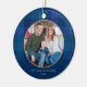Este ornamento rústico de Navidad presenta un colorido patrón de manchas azul y violeta y una tipografía simple con una foto enmarcada en el centro. El texto es de color amarillo dorado bonito, y la impresión de manchas es de una manera moderna y despuntada que se muestra en la mitad superior, y tiene un sólido fondo azul invernal.
