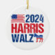 2024 Harris Walz, adorno de Navidad con la bandera estadounidense y el burro demócrata en rojo, blanco y azul. Votar por Kamala Harris y Tim Walz para presidente y vicepresidente como candidatos fiestas democráticos. Guay, diseño patriótico.