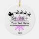 Personaliza tu árbol de Navidad con este adorable adorno de Navidades Hermanas Grandes. Un divertido diseño de Navidades con Santa, su trineo, reno y un gran copo de nieve azul. Personalice este ornamento con el nombre de la Hermana Mayor o cualquier texto que elija y el año correspondiente.