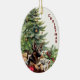 En la parte delantera de este adorno navideño está la imagen de un hermoso perro pastor alemán tendido en su cesta de mimbre frente a un árbol de Navidad decorado. El texto rojo curvo en el costado dice "NAVIDADES". En la parte posterior, el texto rojo y verde dice "MERRY CHRISTMAS", y hay campos de texto adicionales para que usted tenga personalizar a lo que le gustaría.