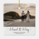¡El perfecto Ornamento de Navidad para los recién casados! Conmemorar su primer año como marido y mujer con este sencillo y moderno ornamento cerámico de fotos casadas y merry Photo Keepsake. Todo el texto es fácil de personalizar.