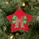 Adorno De Cerámica Navidades de Labradoodle Dog Silhouette Green Bow