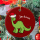 Impresionante dinosaurio verde sonriendo y luciendo muy lindo en un festividad de sombrero rojo de Santa. Me gustan los animales de Navidades prehistóricos y los regalos que los niños amarán. Personalizar este regalo con el nombre del destinatario para hacerlo aún más personalizado.