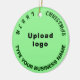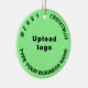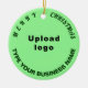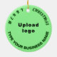 Feliz Navidad! Ornamento cerámico con textos de felicitación de Feliz Navidad, nombre y logo de su empresa o negocio. Los diseños son textos de color verde oscuro sobre fondo verde claro y sobre forma circular. Ornamento para decorar el árbol de Navidad en tu tienda, tienda u oficina. Ornamento para saludar visualmente a sus clientes esta temporada de vacaciones y para anunciar su negocio o promocionar su marca. Personalizar y úselo para crear conciencia de marca. Compruebe la apariencia después de cargar el logotipo y escribir su nombre comercial. Si la apariencia le resulta agradable, puede realizar su pedido ahora. Si necesita cambiar el tamaño y mover el logotipo y los textos para que encajen en este ornamento o en otros estilos que elija, por favor cambie la herramienta de diseño. También puede realizar otros cambios de acuerdo con sus preferencias en la herramienta de diseño, como cambiar el color de los adornos, el color del tipo de letra y el estilo del tipo de letra. Feliz Navidad! Te deseo más ventas esta temporada de vacaciones.