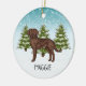 El personalizado original de Destei ilustracion de un lindo perro de raza Labrador Recuperador de chocolate. El perro es colocado en una escena de invierno con abetos verdes y nieve en caída. El fondo es un degradado de azul a blanco que da al diseño ese aspecto frío del invierno. También hay un área de texto personalizable para un nombre u otro texto personalizado.