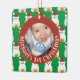 Ilustracion lindo del oso polar blanco con grandes patas, sombrero de Santa y adorno navideño naranja. Personalice con la foto y el texto de su hijo.