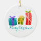 El adorno de cerámica quokka festivo con canguro sonriente inspirado en la acuarela de inspiración retro y presenta en un fondo blanco. Este adorno festivo para Navidades australianos es perfecto para regalos de Navidades, ornamentos de árboles o regalos, ilustrado por Jo Story de Sketchbook Designs. Este adorno navideño feliz y divertido haría que este Navidad se quedara perfecto.