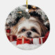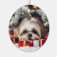 Este adorable adorno navideño, con un cachorro chií tuzú tendido debajo de un árbol de Navidad, es un regalo maravilloso para cualquier amante shih tuzu.