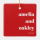 Haga de su boda de invierno algo especial con este único adorno de cerámica personalizado en rojo y blanco, y doble como una tarjeta de lugar personalizada para sus invitados. Con su nombre en una tipografía elegante, sirve como una cuidadosa tarjeta de acompañantes y un placer que pueden apreciar. Perfecto para un boda Navidad, este diseño festivo le da un toque encantador a su decoración de mesa, combinando la alegría de las vacaciones con la elegancia atemporal.