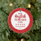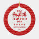 Reconocimiento personalizado del profesor Ornamento de Navidad con las palabras "Mejor profesor de inglés de la historia" en un diseño de marco de escritura de Feliz Navidad. Se puede personalizar según el tema, su nombre y el año.