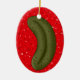 ¡Este es un gran regalo para tus amigos! Hay varias versiones de los Navidades alemanes Pickle Ornament. ¡Búscalos por diversión! Una es que, después de haber colocado todos los adornos en el árbol, se coloca cuidadosamente el ornamento de pepinillo. Si es visto por primera vez por un niño, St. Nick le traerá un regalo extra a ese niño. Si un adulto lo ve por primera vez, el adulto tendrá buena suerte todo el año. Tengo uno en mi árbol cada año.... : ) Diviértete con esto. ¡Piensen en los temas! Juega con colores de fondo, agrega o elimina fondos y texto, y (por un poco de cargo adicional que ya se ha añadido a este) personalizar la parte posterior con imágenes, color, tu logotipo / información comercial., etc. o suprímalo si lo tengo encendido (para bajar la tarifa)! También son excelentes para regalos o para usar como toque final de clase en su envoltura de regalo. Muchas gracias por estar aquí. Por favor, encuéntrame y ven a Zazzle a través de mi enlace ya que ayuda a mis estudiantes (mientras compro artículos de arte con mis ganancias): www.zazzle.com/sharonrhea* .... o www.zazzle.com/ornaments_only* ... Gracias, Sharon Rhea Ford, NBCT-Art (Los créditos de derechos de autor se publican en mi página principal y en mi tienda SHARONRHEA). Zazzle ofrece descuentos en cantidad.