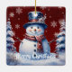 Añada un toque encantador a su árbol esta temporada navideña con un adorno de cerámica navideña de Navidades de invierno rojo. El diseño de un adorno incluye un lindo muñeco de nieve con un bonito sombrero de tope y una bufanda parados en una escena de bosque invernal con caída de nieve. También hay artículos de regalo y de vacaciones disponibles con este diseño.