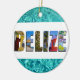 Muestra a todos tu amor por el país de Belice con este adorno navideño que contiene fotos de Ambergris Caye, Caye Caulker y ruinas mayas impuestas sobre un fondo tropical azul del océano.