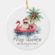 Sumérgete en el espíritu de las vacaciones con este único adorno navideño que incluye un Santa Claus relajado con gafas de sol tumbado en un flamenco rosa flotando en el océano. Perfecto para añadir un ambiente de playa a tu árbol de Navidad, este adorno es ideal para aquellos que viven en lugares tropicales como Florida, Hawaii o Bahamas, o para cualquiera que ame un divertido tema de vacaciones costeras. La escena incluye una palmera decorada con adornos, suaves olas del océano y una pequeña isla detrás de Santa, todo ello decorado con un encantador estilo rústico acuático. La mezcla de tipos de letra simples y tipografía de guiones añade un toque casual y elegante, mientras que la fecha se muestra en la parte inferior para marcar la ocasión. Una forma divertida y festiva de traer arena y surf a su decoración de vacaciones. Navidades De Playa Graciosos Ornamentos De Cerámica Con Santa De Verano En Un Océano De Palmera Flotante Flamingo