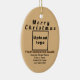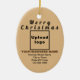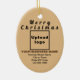 Feliz Navidad! Ornamento cerámico con los textos de la Feliz Navidad, el nombre de su negocio o empresa, logotipo, dirección y número de teléfono. Los diseños son textos de color marrón oscuro y negro sobre fondo marrón claro y forma oval. Ornamento para decorar el árbol de Navidad en tu tienda, tienda u oficina. Ornamento para saludar visualmente a sus clientes esta temporada de vacaciones y para anunciar su negocio o promocionar su marca. Personalizar y úselo para crear conciencia de marca. Compruebe la apariencia después de cargar el logotipo y escribir textos. Si la apariencia le resulta agradable, puede realizar su pedido ahora. Si necesita cambiar el tamaño y mover el logotipo y los textos para que encajen en este ornamento o en otros estilos que elija, por favor cambie la herramienta de diseño. También puede realizar otros cambios de acuerdo con sus preferencias en la herramienta de diseño, como cambiar el color de los adornos, el color del tipo de letra y el estilo del tipo de letra. Feliz Navidad! Te deseo más ventas esta temporada de vacaciones.