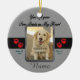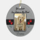 Recuerden a su querido amigo peludo en la época de los Navidades con este elegante adorno conmemorativo de mascotas con huellas de pata. Personalízalo con tu foto, nombre de perro o gato, fecha de nacimiento y muerte. Haga clic en "Personalizar" para cambiar el tamaño y la posición de la foto o cambiar los colores o estilos de las fuentes. La parte posterior del ornamento puede cambiarse a cualquier color que quieras y tiene el poema "Pintas en mi corazón" en una hermosa y sentida fuente. Hace un regalo para la familia o los amigos.