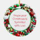 Navidades escarlatas Cocina de Azúcar con adorno de fiesta de Candy Sprinkles. En la parte posterior del ornamento hay un lugar donde se puede poner un mensaje personalizado.