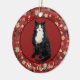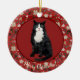 Pintura de un gato peludo de esmoquin blanco y negro, flores en el fondo. Para todos los amantes de los gatos, ¡Feliz Navidad!