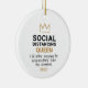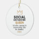 "Reina de Distancia Social que hice compras en línea por todo. Incluso este ornamento". 2020, tipografía graciosa con corona dorada en la cima.