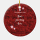 Para tu hija, este Navidad, un adorno cerámico magnífico de sake que lucirá hermoso y único colgado de su árbol. La silueta burdeos de un rostro de chica se sienta en un fondo rojo de bayas rojas mezcladas con un hueso rojo. El ilustracion del bonito la muestra usando un gorra rojo y verde y una imitación de collar de piel blanca. Flores pequeñas y copos de nieve se rocian a su alrededor. La parte trasera de este elegante y elegante adorno tiene el mismo patrón de berry roja, y ambos lados se pueden personalizar. En la tienda WilBicreations también hay disponible una tarjeta de felicitación para este diseño.