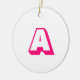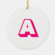 Monograma fucsia rosa caliente y personalizado blanco inicial lindos Navidades personalizados lindos iniciales Ornamento cerámico
