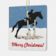 Bonito Ornamento de Navidad con un caballo y jinete saltan un bueyes y les desean a todos una Feliz Navidad. Perfecto para el saltador en tu vida