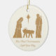 Navidades Natividad Escenario en Elegante Tinta de Oro en Crema con Inspirador Ornamento Cerámico Saying... Mary, Joseph, Baby Jesus y la Estrella de Belén cuentan la historia mientras el mensaje de los Navidades inspiradores da el significado: "Que la conciencia de Cristo ilumine tu camino". Puede revisar fácilmente el texto con su propio mensaje.