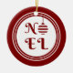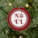 Los Navidades rojos y blancos adornan el círculo con un divertido texto NOEL y un diseño bauble de los Navidades en la parte delantera y un mensaje de texto de Feliz Navidad en la parte trasera.