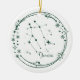 Decoren su árbol en estilo celestial esta temporada de vacaciones con nuestro vibrante y verde Ornamento Celestial de Navidad! Con una bella constelación de Géminis en el centro de la corona, este singular adorno aparece con un fondo blanco. Personalízalo con un nombre y fecha de nacimiento en la parte posterior para un toque especial. Ideal para añadir un toque mágico a tu decoración de vacaciones o regalo de zodiaco.