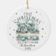 Marque la magia de su primera Navidad en una nueva casa de playa con este encantador ornamento redondo de cerámica blanca de Navidad con un ilustracion náutico con el mar y una casa. Personalízalo con tu dirección, el nombre de tu familia o pareja, y el año para crear un conservador festivo que apreciarás por años. Un regalo o un recuerdo encantador para su primera temporada de vacaciones en un lugar nuevo.