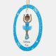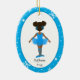 Este adorable adorno vacacional presenta a una bailarina afroamericana en un tutu azul bailando en un marco blanco sobre un fondo de copo de nieve azul y blanco. Reversa las características de la bailarina que da la ilusión de su baile cuando se gira el adorno de ida y vuelta. Agregue el nombre y el año de su hijo para personalizar. Hace un gran regalo para la bailarina en tu vida.