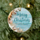 Un lindo personalizado de vacaciones de negocios para una compañía de islas tropicales. Personalizar este verde azulado bonito de fotografía de madera azul y conchas marinas adorno navideño con tu nombre de corporación costera u otro texto profesional costero.