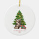 Crea un querido conservador de vacaciones con este adorno navideño de perro de Chihuahua. Con un árbol festivo, regalos envueltos y un perro acuarela realista sentado debajo del árbol, este adorno es perfecto para los amantes del perro. Personalice con su apellido, el nombre de su mascota y el año para que sea único suyo. Una maravillosa adición a su decoración navideña o un regalo para cualquier dueño de perro, padre mascota o entusiasta del perro celebrando la magia de los Navidades. Ofrezco muchas otras razas en la colección de abajo.