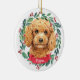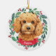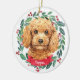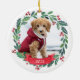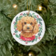 Decoren su árbol o den un regalo especial esta temporada de vacaciones con este elegante caniche de Feliz Navidad en un adorno de navidad de diseño de guirnalda, y decoración a juego. Este adorno de navidad de cangrejo incluye un perro acuarela en una corona verde y roja con bayas y azulejos en un lado y tu foto en el otro. Personaliza con foto, nombre, año anterior. Este adorno de navidad de canapé será el favorito de los amantes del caniche, los amantes del perro y los amantes de los animales. Visite nuestra colección para ver las tarjetas de navidades de canapé, decoración y regalos. DERECHOS RESERVADOS © 2020 Judy Burrows, Black Dog Art - Todos los derechos reservados. Personalizado Navidades Mascota Perro Foto Apricot Poodle Ornamento cerámico
