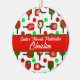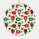 Ornamentos navideños de pellebol. El pickleballer favorito de Santa a personalizado - patrón de remo de bolas de picnic. Colores tradicionales de Navidades rojos, verdes y blancos en remo de bola de picnic. Los pájaros están decorados con copos de nieve, sórdido San Nicolás, hombres de nieve, renos, campanas de plata, gorra de Santa Claus. Muchas bolas de picnic verdes brillantes hacen un patrón de puntos de polka en un fondo blanco nevado. Colorido ornamento de pickleball de Navidades con tema de pickleball para personalizar para tu madre, papá, tío, tía, hermano, hermana, vecina, abuelo, abuela, esposo, esposa, amiga o colega de trabajo que no deja de hablar de pickleball.
