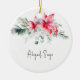 Navidades adornos cerámicos personalizados con escritura de cita inspiradora representan un hermoso diseño de acuarela con poinsettias rosas y rojas simples y verduras. En la parte de atrás aparece la Biblia Verse Luke 2:14, "Gloria a Dios en lo más alto y en la tierra, paz, buena voluntad hacia los hombres". El verso y el saludo, la oración se pueden personalizar según los detalles de su elección.